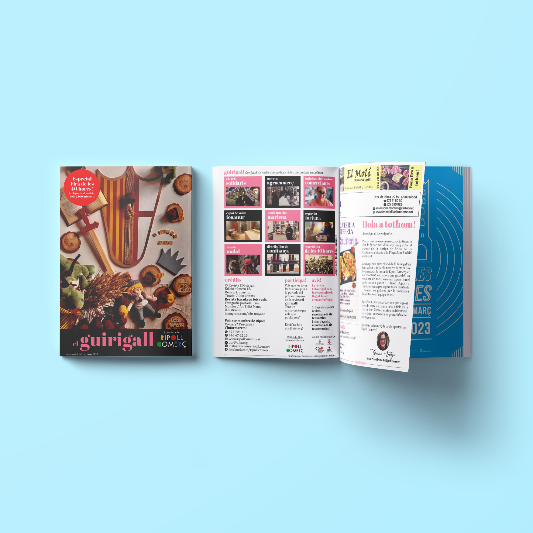 Ara farà uns 15 anys, la Unió de Botiguers utilitzava una eina molt eficaç per comunicar-se amb la gent. Es tractava de la revista LA UNIÓ, on hi havia tota mena d’informació relacionada amb la nostra associació. Des de Ripoll Comerç es va ressuscitar amb un nou disseny i amb un nou nom, El Guirigall, la qual ha estat al carrer durant 7 números (també la pots descarregar en format digital en aquest apartat), fins a l’arribada de Respira Comerç, la nova revista trimestral, comercial, comarcal i gratuïta. Com l’anterior, es pot aconseguir als comerços, ara ja dels 19 municipis i llocs d’interès turístic.
