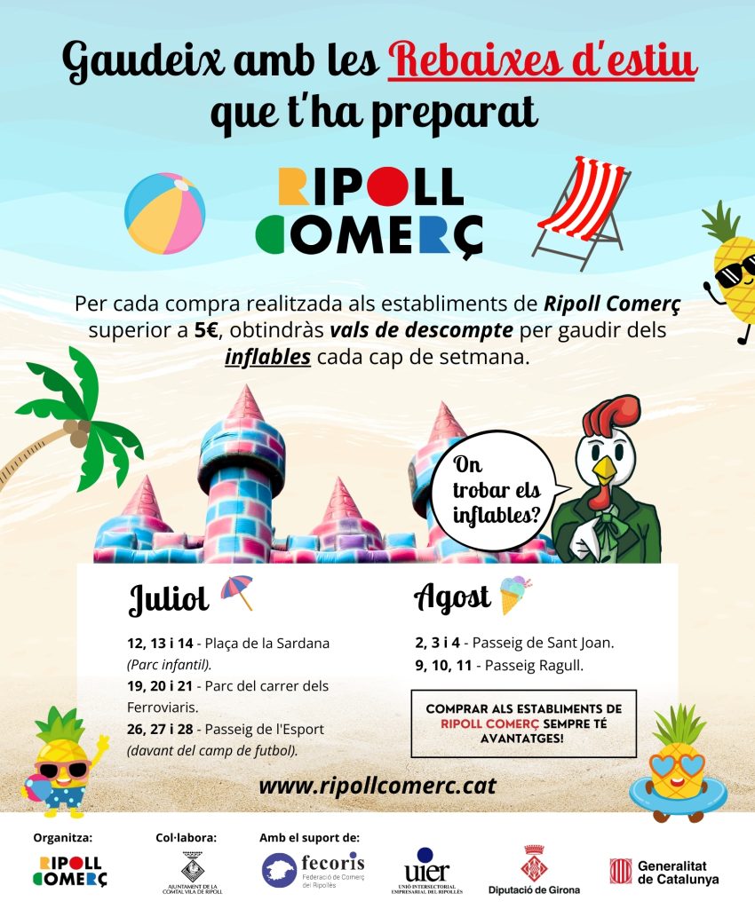 - Aquest 9, 10 i 11 d’agost estarem al Passeig Ragull. Últim dia per gaudir dels inflables de les Rebaixes de Ripoll Comerç!