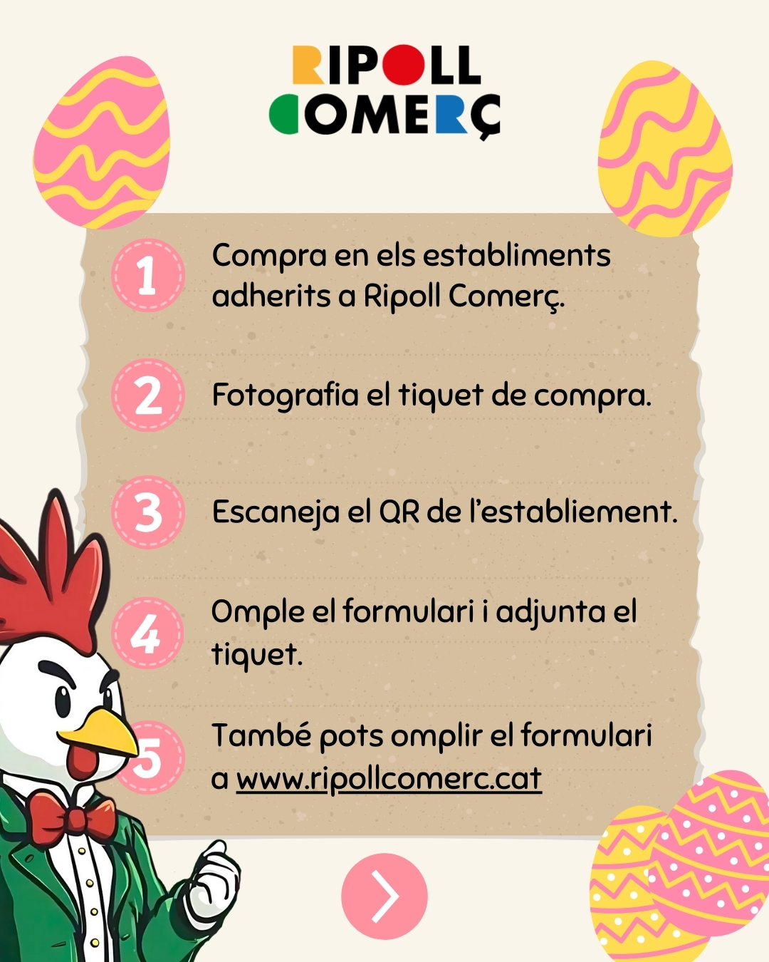 - Fes una foto al tiquet de compra de qualsevol establiment adherit a Ripoll Comerç.